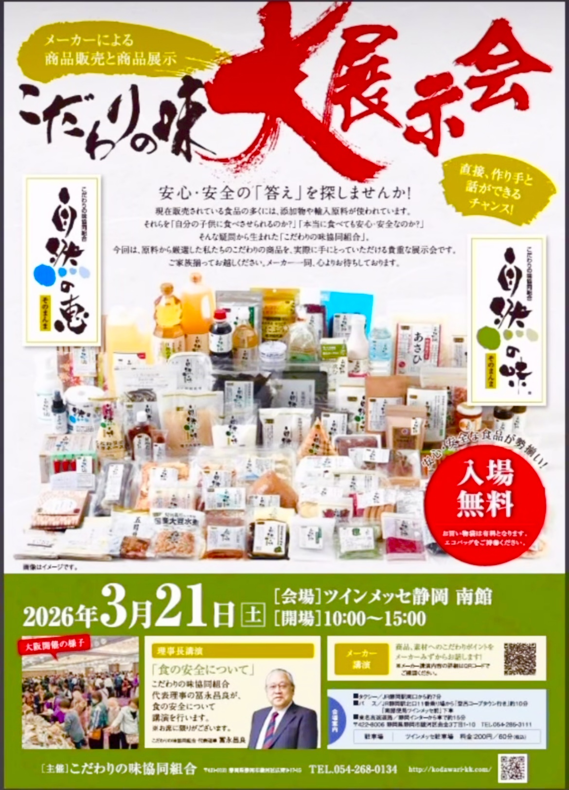 「自然の味」「自然の恵」そんなパッケージの商品を見かけたことはあったし、購入したこともあったんです。でも、それが意味するところはまるで知りませんでした。上記のYoutube 動画を見て感激し、イベント会場で行われる、冨永昌良さんの講演会も聞きたいと思い、早朝、静岡に向けて車で出発したのでした。